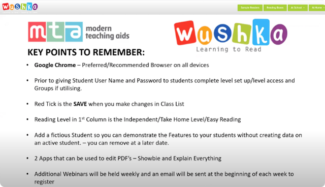 On this page you’ll find a range of support resources for Wushka, including our comprehensive privacy policy. The ‘Getting Started’ section has everything you need to get up and running with Wushka and the reading level correlation chart and curriculum links demonstrate how easily Wushka can be integrated into your teaching program. For a more detailed overview of Wushka for your team or school staff, check out our introductory webinars.